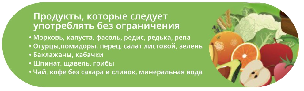Каждый прием пищи должен включать белковый компонент — это может быть нежирное мясо, рыба, творог или яйца. Углеводы лучше употреблять в первой половине дня, отдавая предпочтение цельнозерновым крупам. Зеленые овощи можно есть практически без ограничений, они обеспечивают организм витаминами и клетчаткой [5].